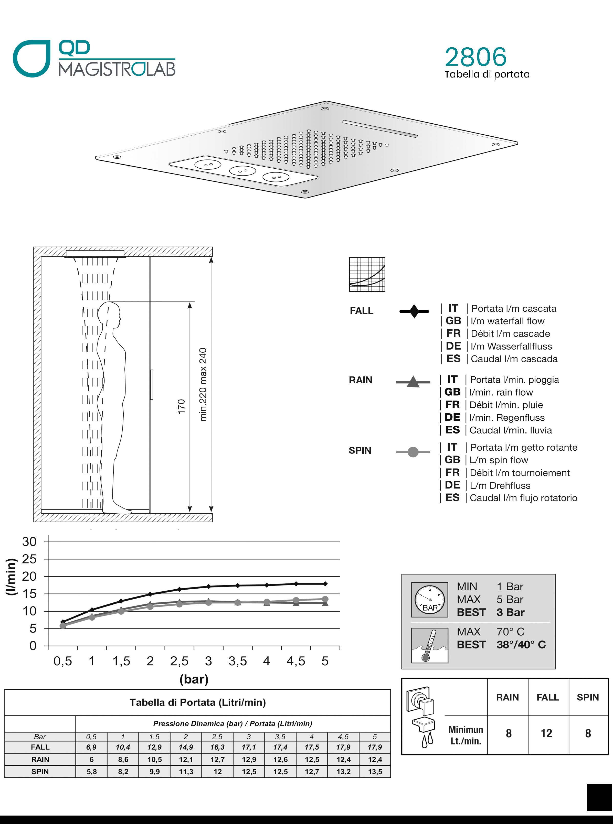 2806 //630×480// Stainless steel overhead shower with rain, waterfall and body-jets