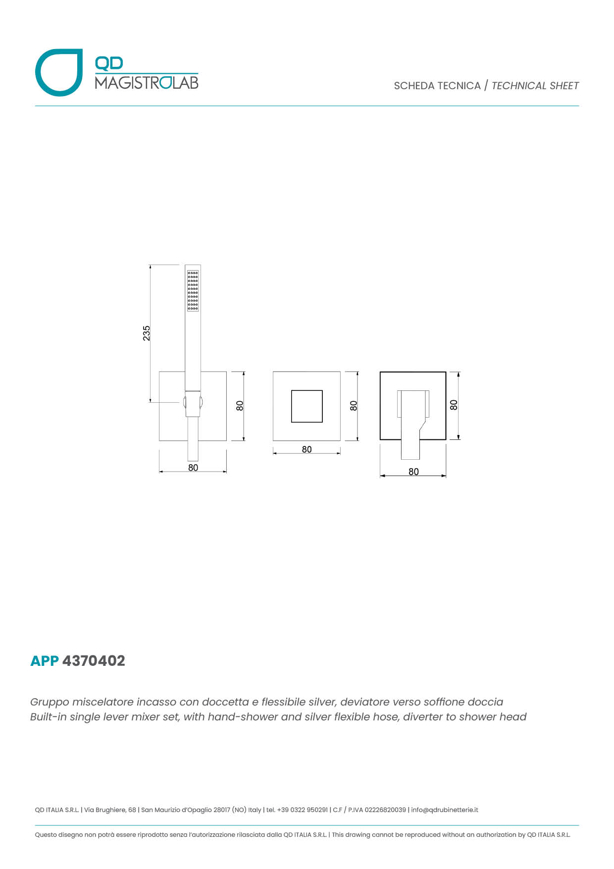 4370402 Built-in mixer assembly with hand shower and hose, with diverter for shower head