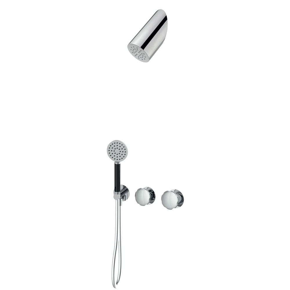 10B6285 Complete shower system with fixed rainfall shower head, built-in 2-way mechanical mixer, 150 cm anti-twist hose and anti-lime hand shower.