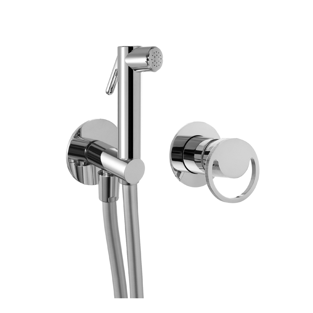 5790100 Brass hygienic hand shower with stand, built-in water outlet, recessed mixer and flexible hose cm.120