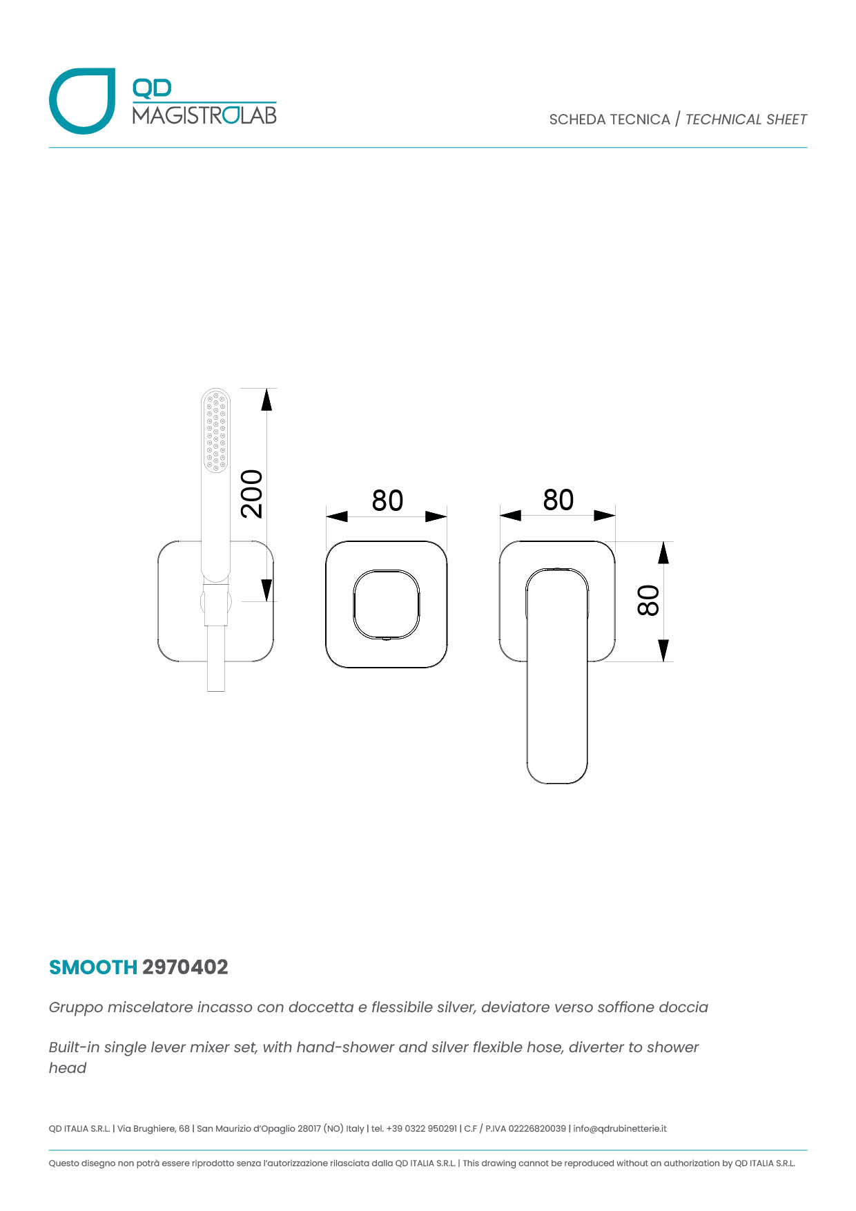 2970402 Built-in mixer assembly with hand shower and hose, diverter to shower head