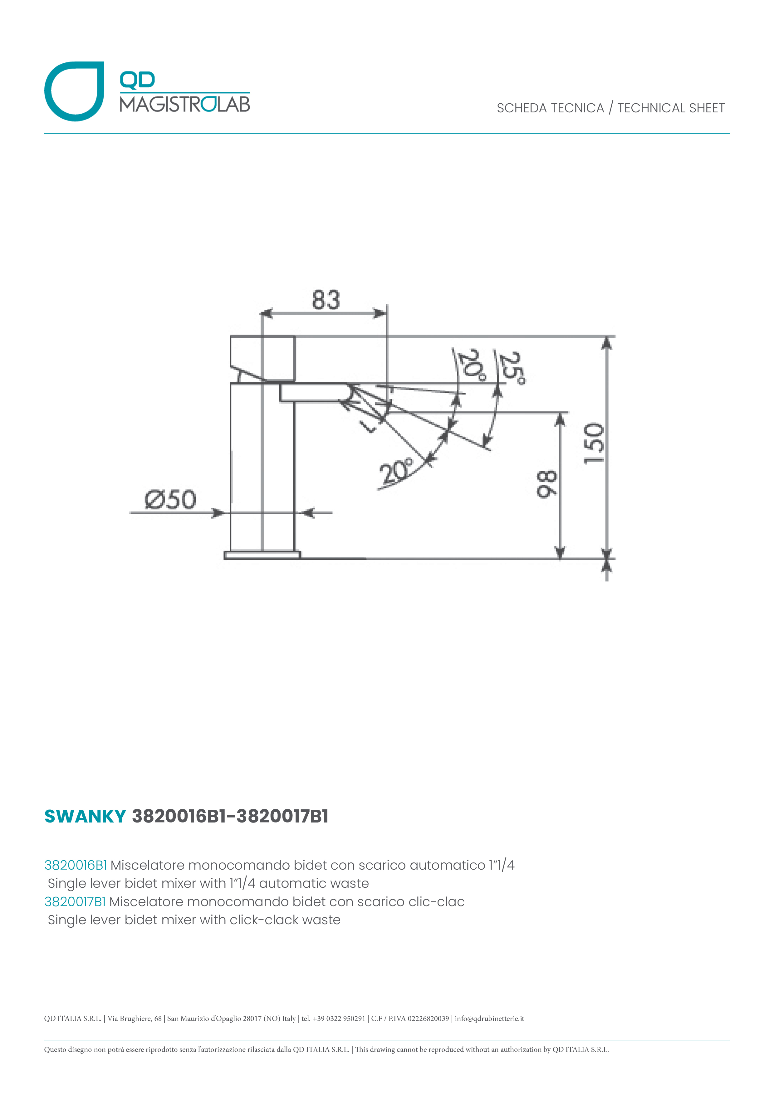 3820016B1 Single-lever bidet mixer with 1″1/4 automatic waste