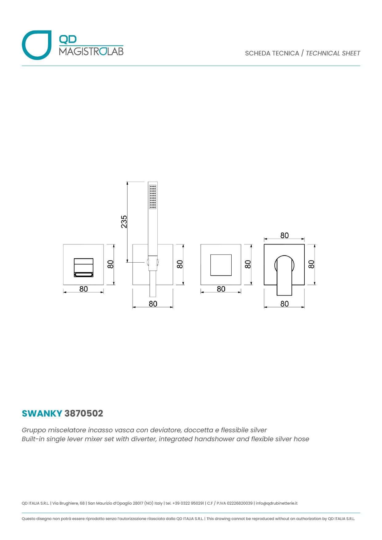 3870502 Built-in bathtub mixer assembly with diverter, hand shower and hose