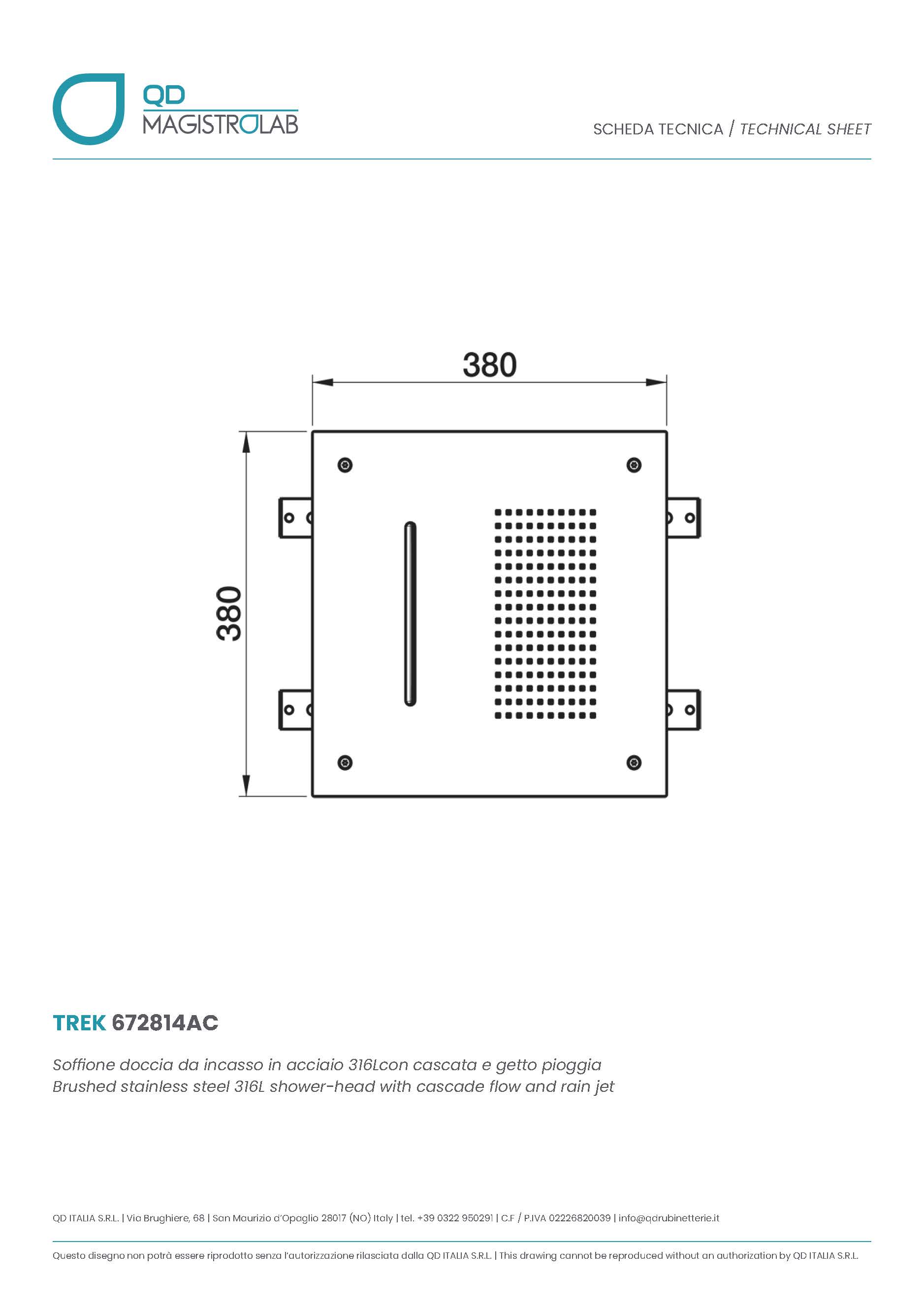 672814AC Built-in 316L steel shower head with waterfall and rain jet, 380x380cm