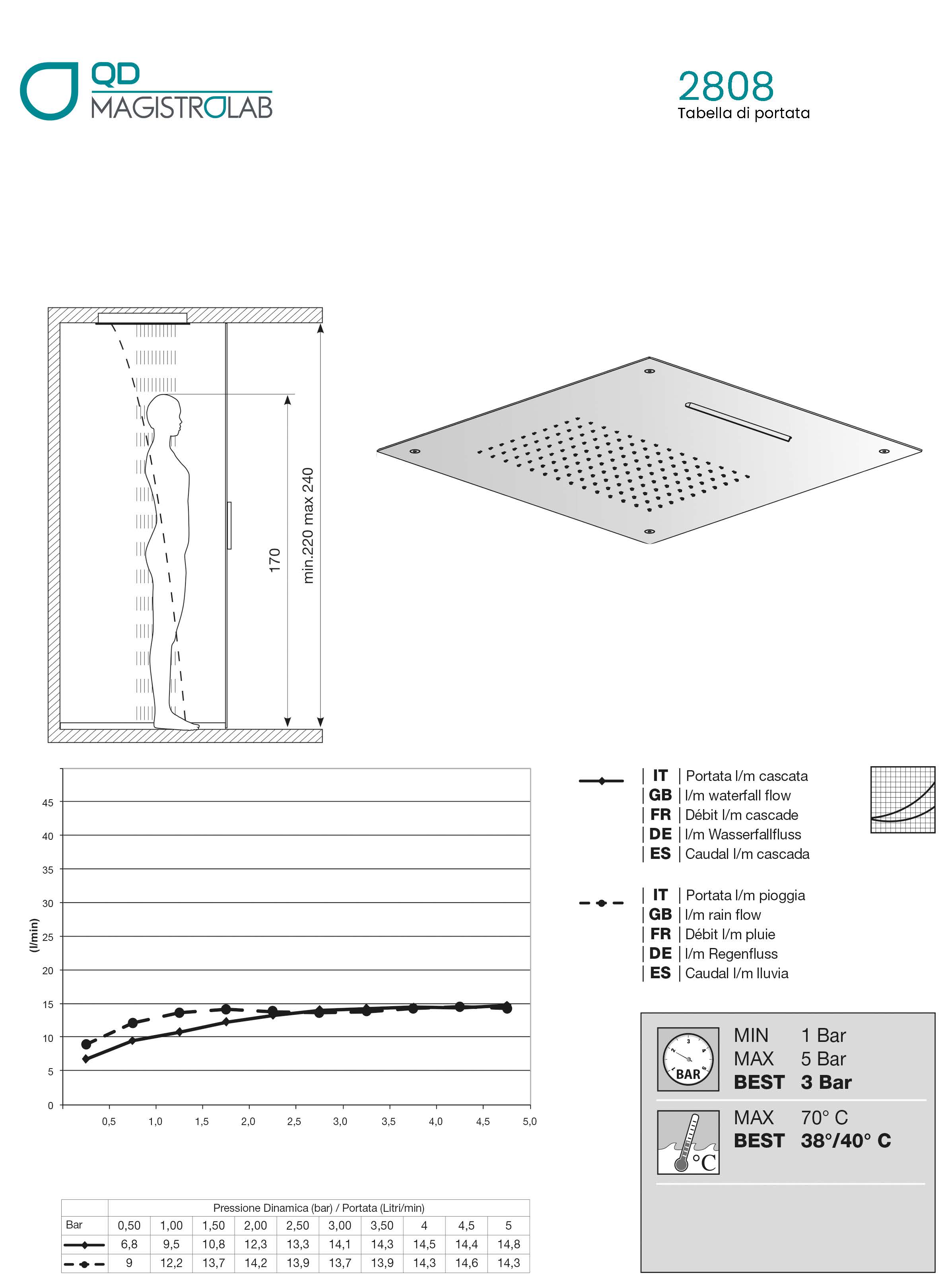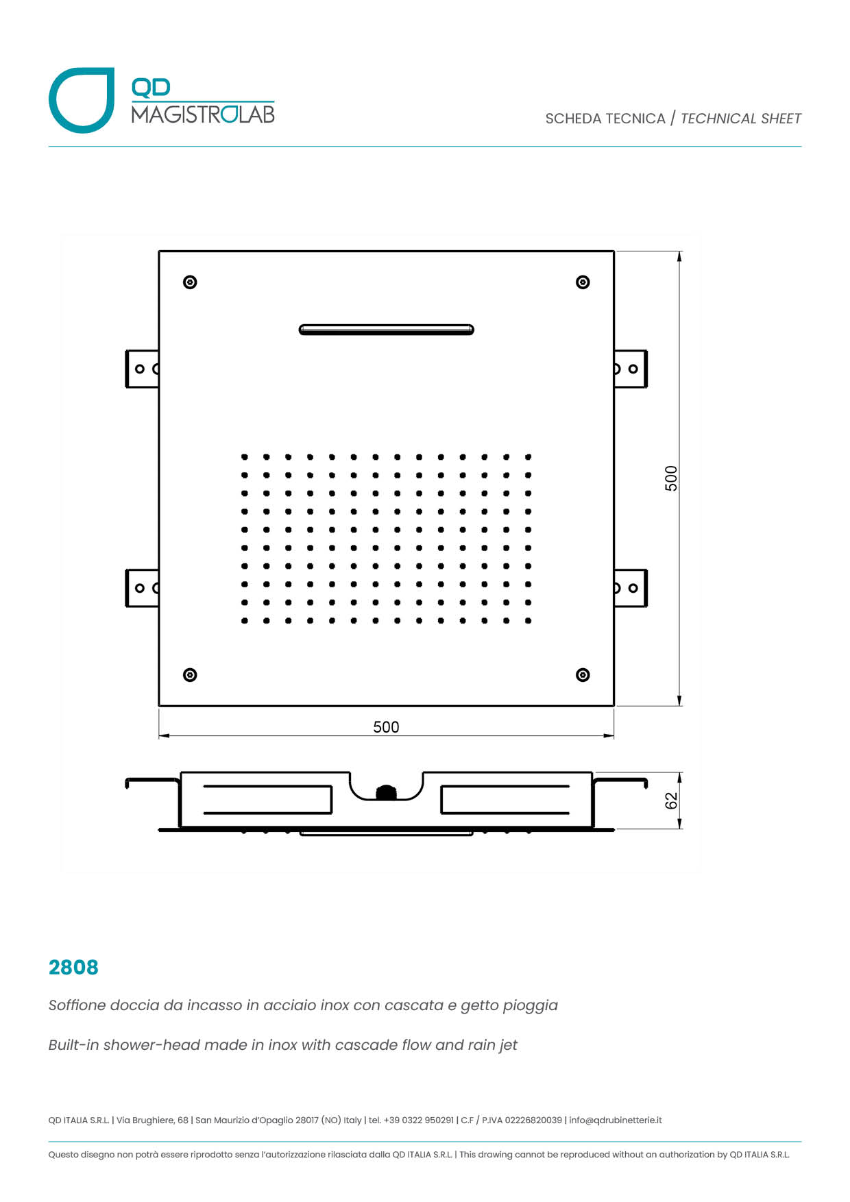 2808 //500×500// Soffione doccia da incasso in acciaio inox con cascata e getto pioggia