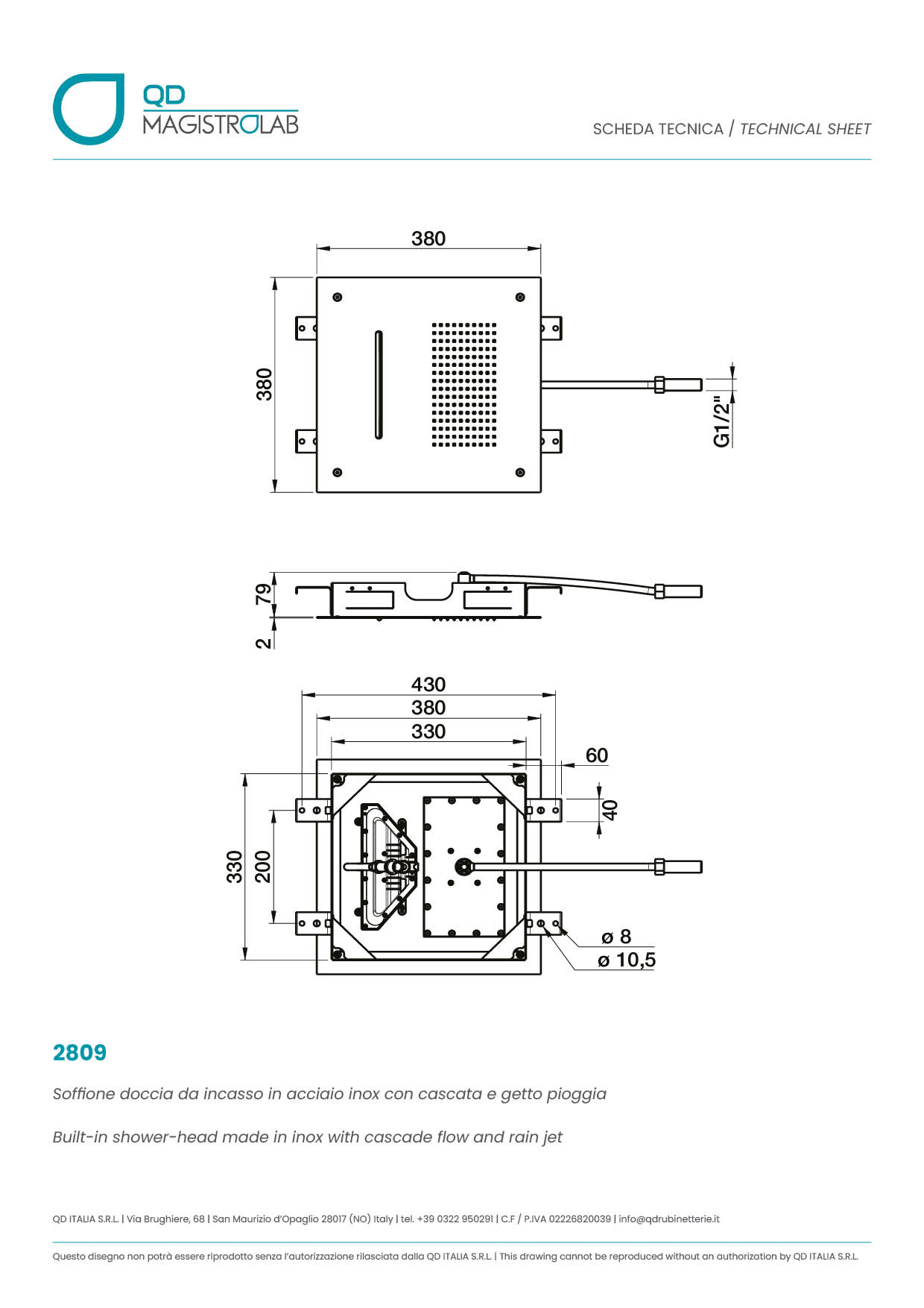 2809 //380×380// Soffione doccia da incasso in acciaio inox con cascata e getto pioggia