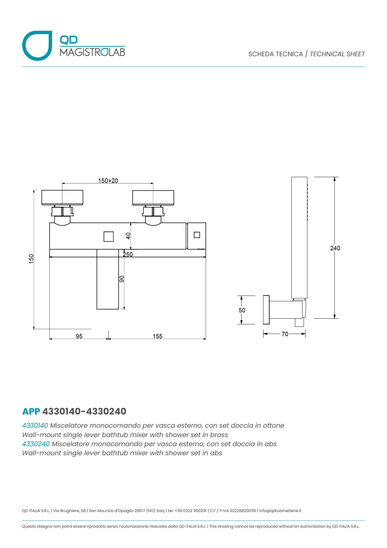 4330140 Miscelatore monocomando vasca esterno con set doccia in ottone
