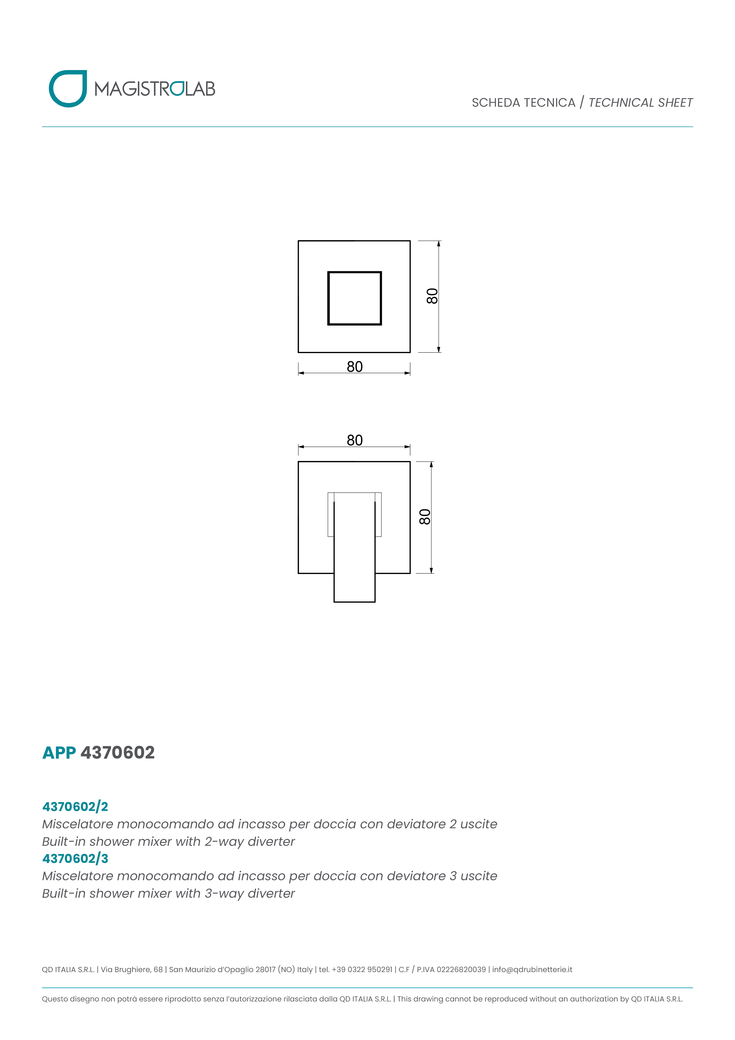 4370602/2 Miscelatore monocomando doccia ad incasso con deviatore 2 uscite