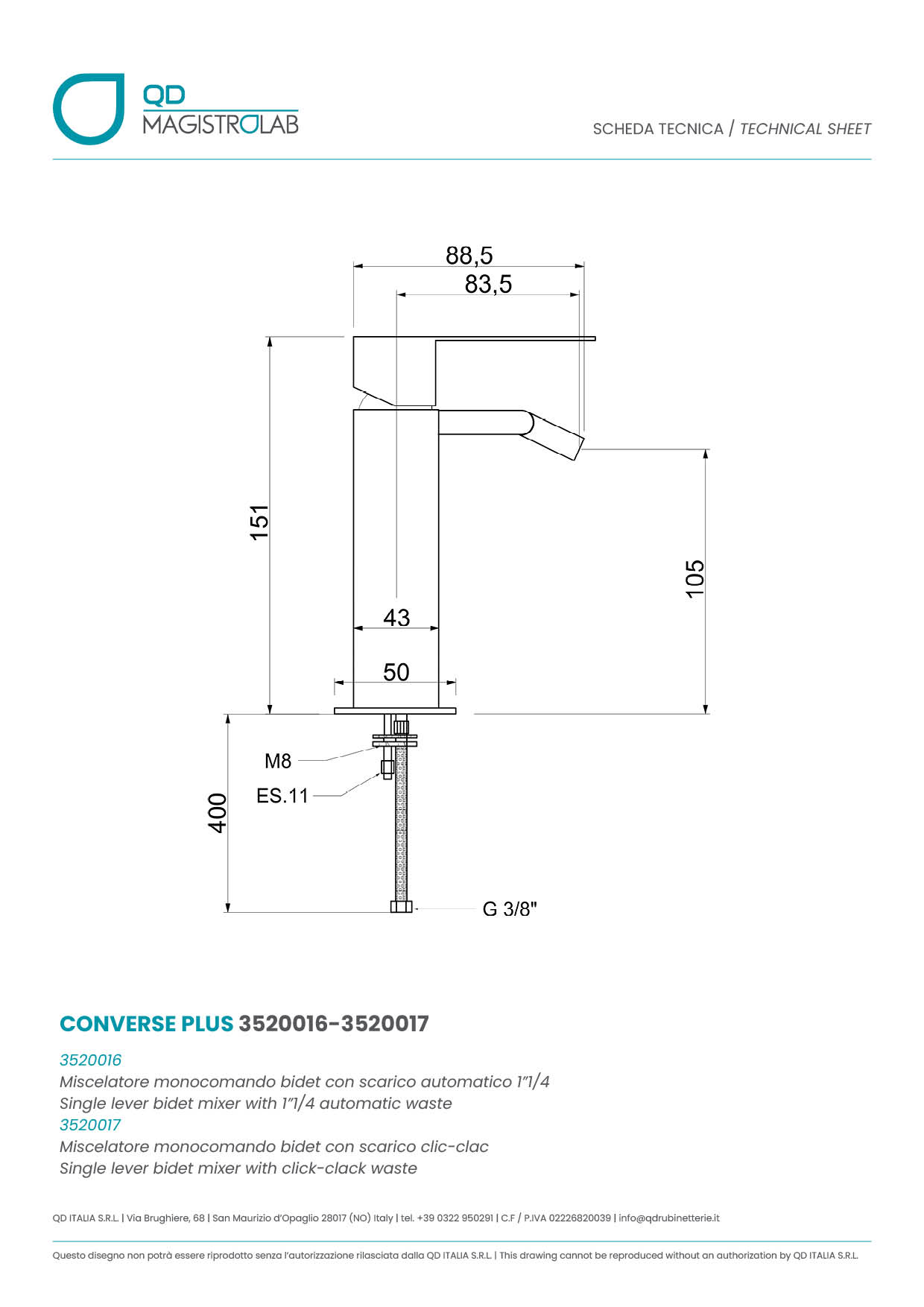 3520017 Miscelatore monocomando bidet con scarico clic-clac