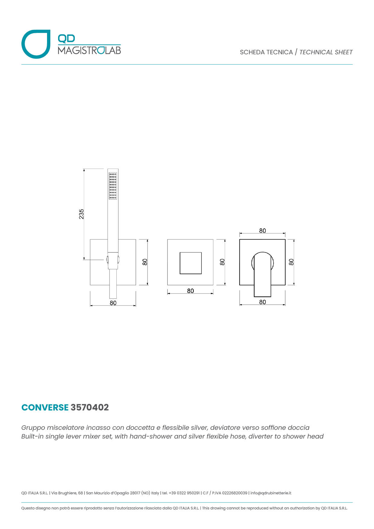 3570402 Gruppo miscelatore incasso con doccetta e flessibile, deviatore verso soffione doccia