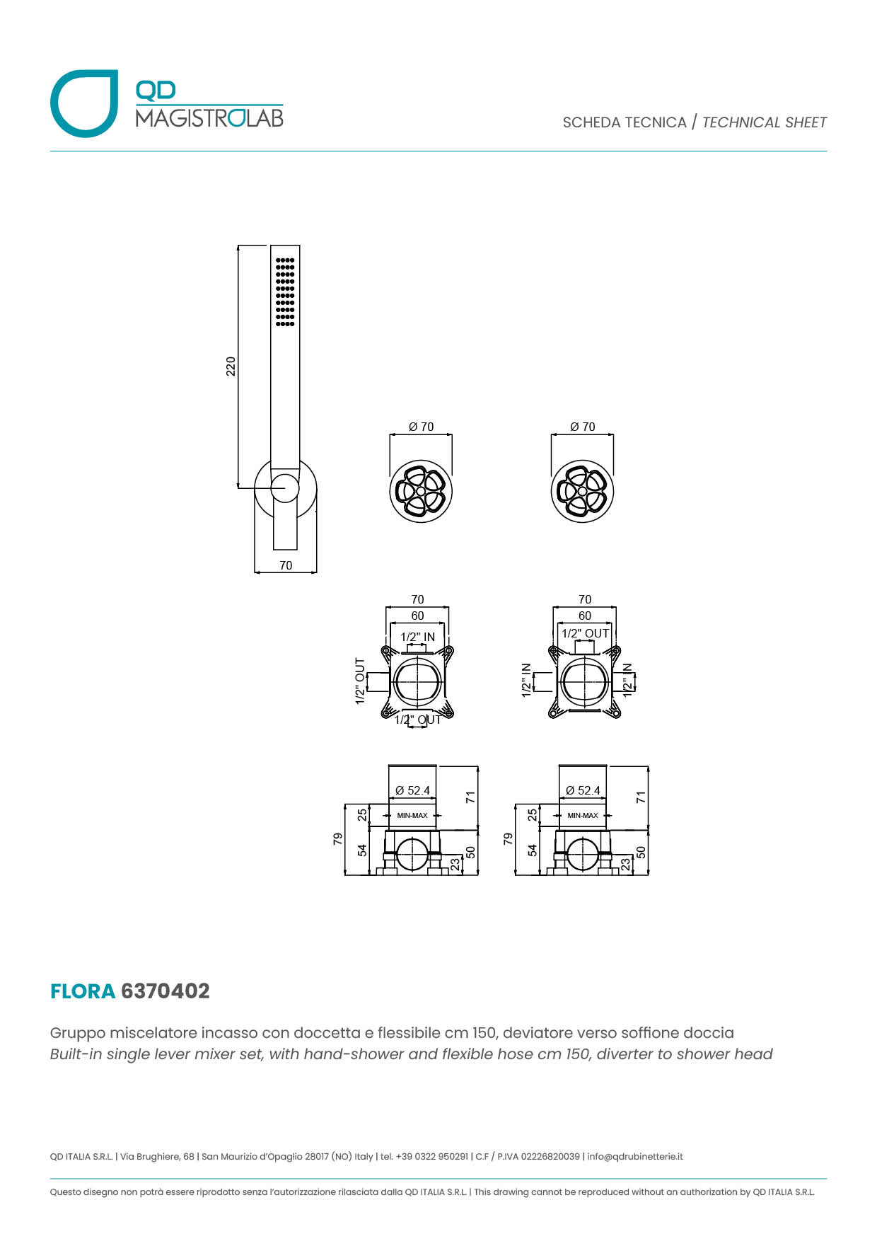 6370402F Gruppo miscelatore a incasso con doccetta e flessibile, deviatore verso soffione doccia