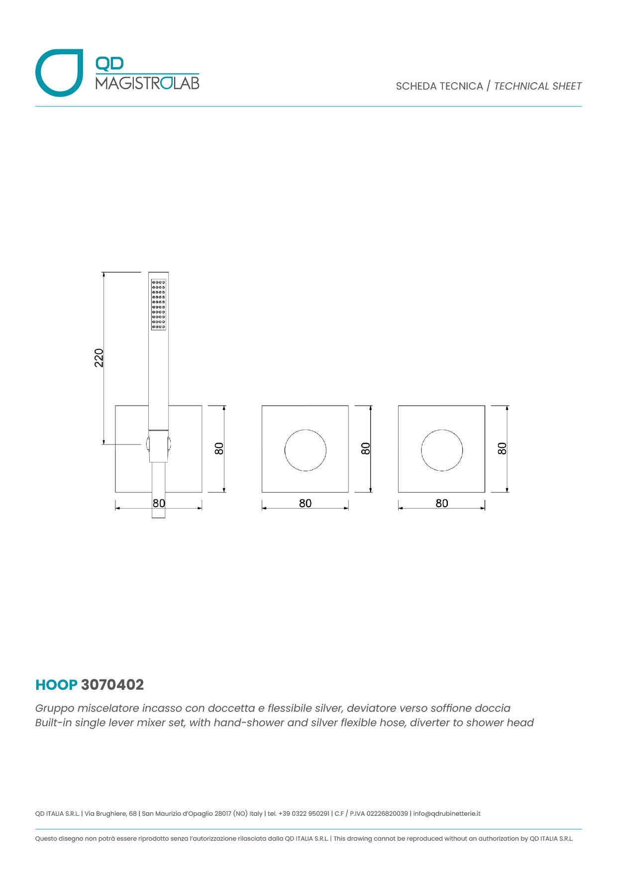 3070402 Gruppo miscelatore incasso con doccetta e flessibile, deviatore verso soffione doccia