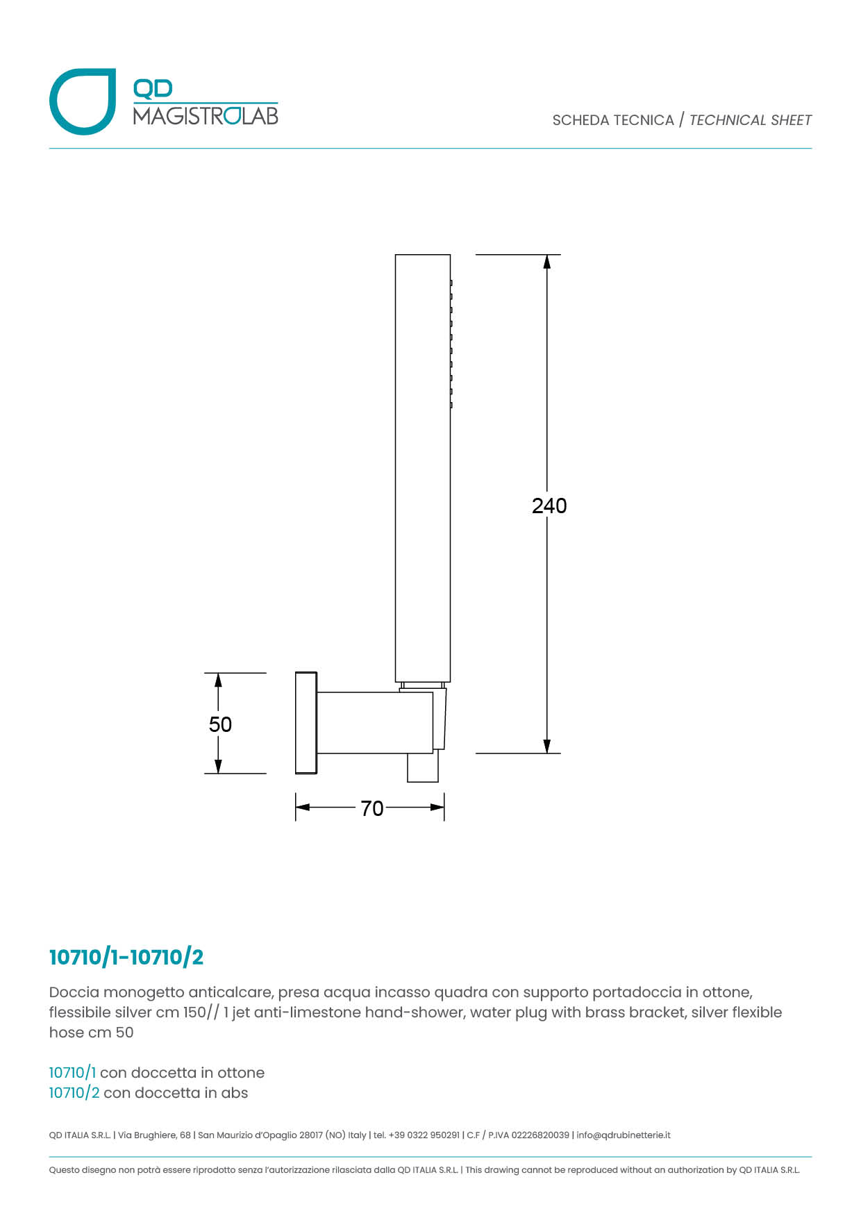 10710/2 Doccia monogetto anticalcare in ABS, supporto incasso quadro con supporto portadoccia in ottone, flessibile silver 150 cm ( disponibile solo in finitura CROMO )