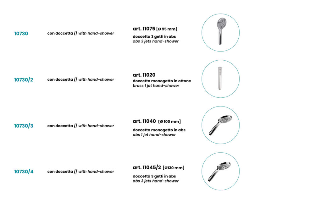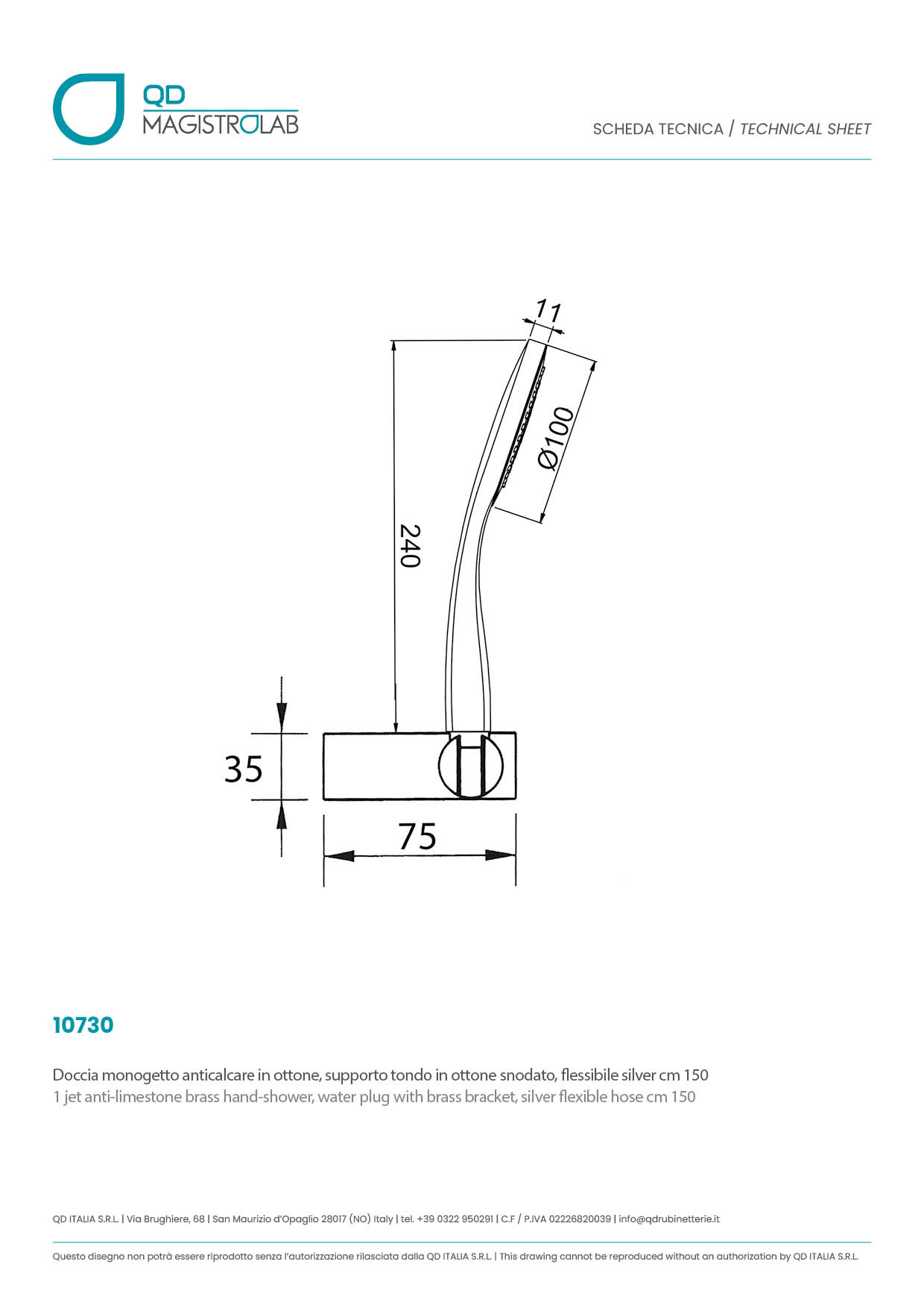 Doccia anticalcare in ottone, supporto tondo in ottone snodato, flessibile silver 150 cm
