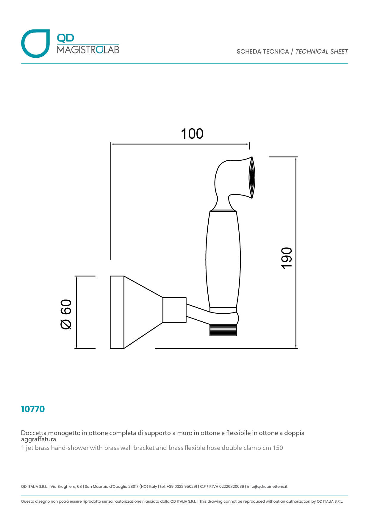 10770 Doccetta monogetto in ottone completa di supporto a muro in ottone e flessibile in ottone a doppia aggraffatura
