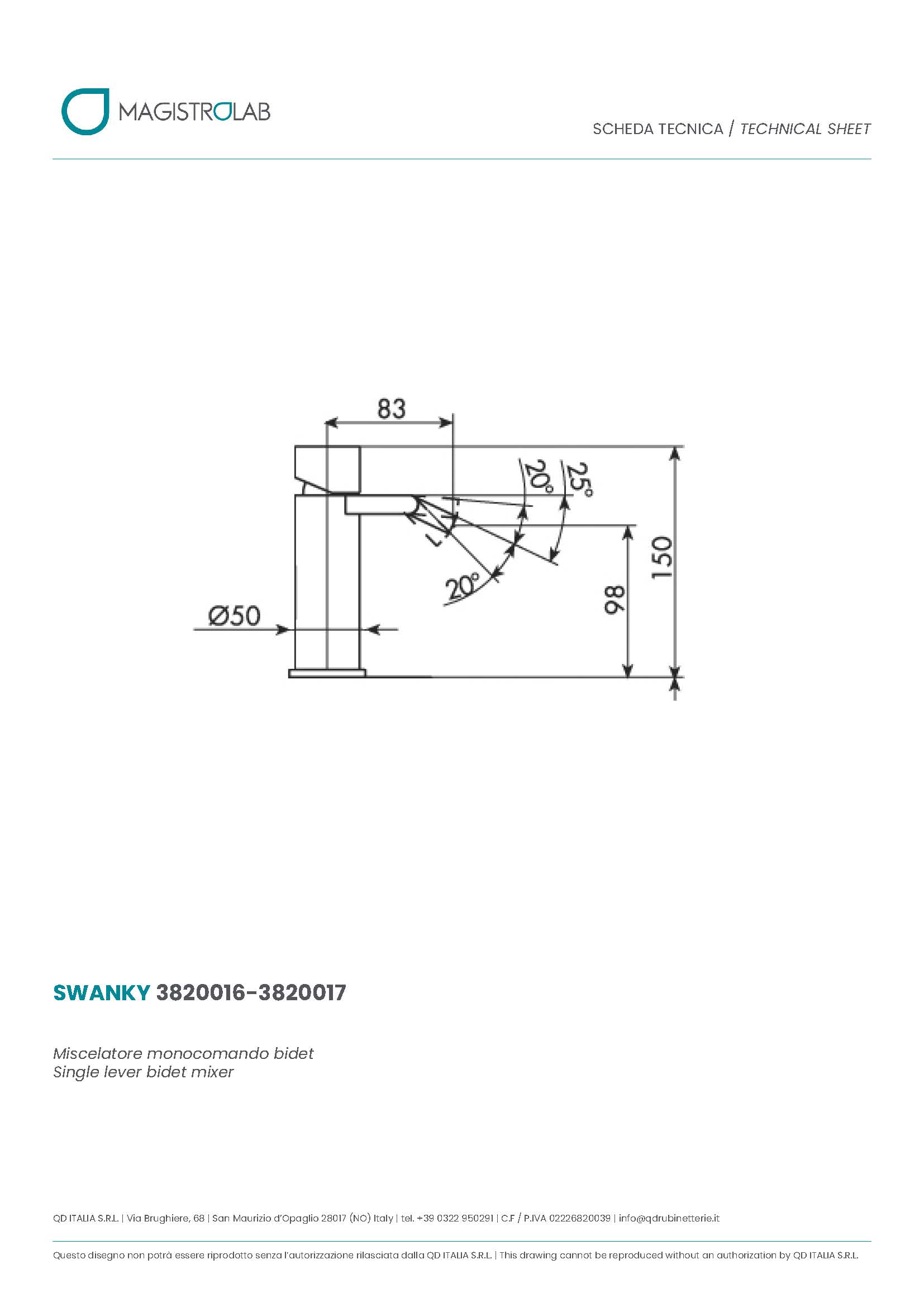 3820017 Miscelatore monocomando bidet con scarico clic-clac
