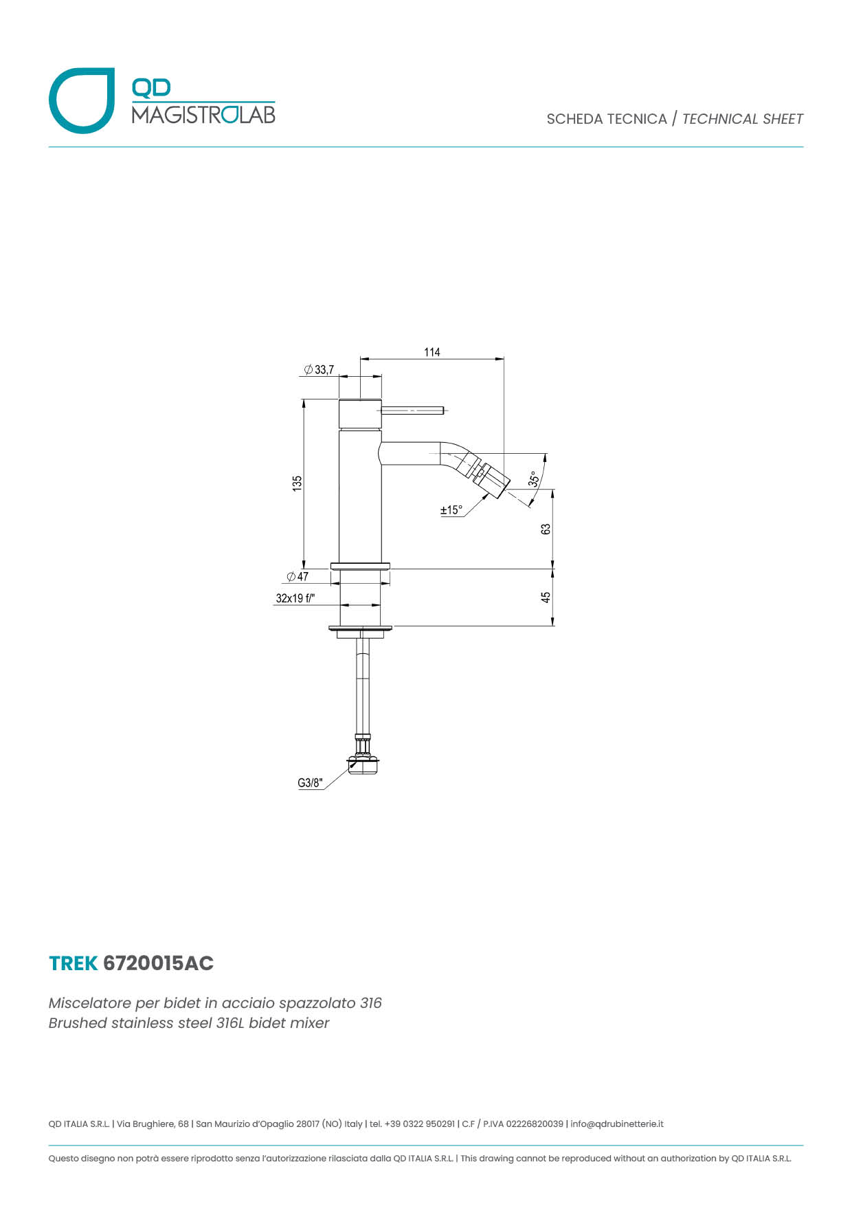 6720015AC Miscelatore per bidet in acciaio spazzolato 316L
