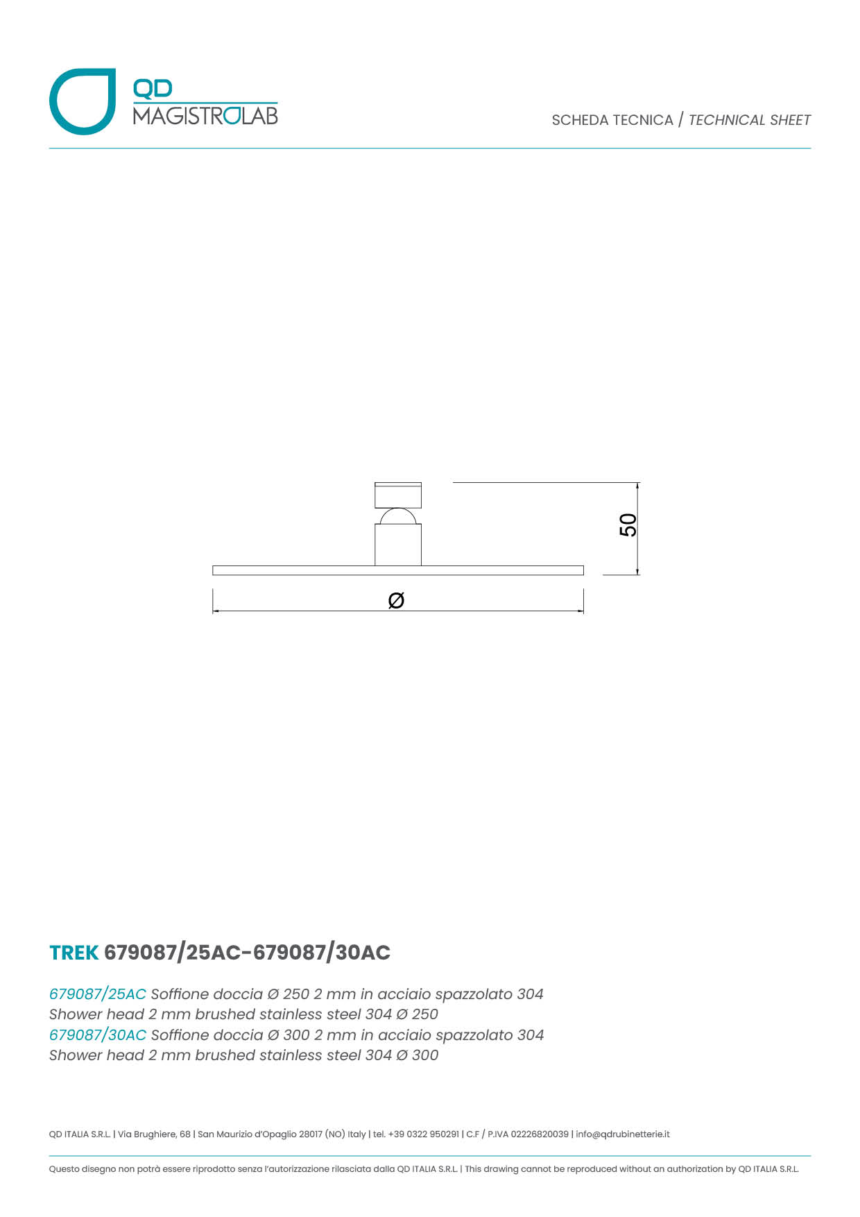 679087/25AC Soffione doccia Ø250 in acciaio spazzolato 304, spessore 2mm